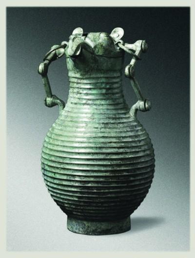大多数日本古董商对中国青铜器却步,起初,坂本五郎对青铜器的了解也止步于铜铁之辨。但于他而言,“若畏怯风险,那便丝毫没有在这个世界取胜的 可能”。他以日本学者水野清一、樋口龙康等为师,律己以眼,秉持“失败乃成功之师”的宗旨,终以锐眼卓见赢得了这场“危险游戏”,成为日本最重要的青铜器 收藏家之一。坂本氏所珍藏的青铜鸮首提梁壶便是一典例。此藏品壶盖呈鸮首状,器身上有优雅的瓦楞纹。其特殊之处在于将动物造型与实用器物功能相结合的创作 手法。清代收藏家吴云在《两罍轩彝器图释》中评价此物“器形制奇古,为彝器中罕有之珍”。