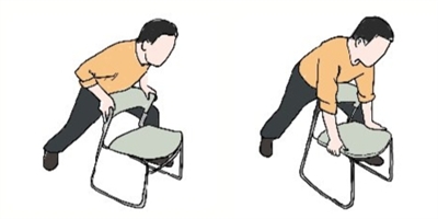 如果旁边无人施救,必须立即在两三分钟内、趁着自己意识尚清醒时进行自救。采取立位姿势,头部后仰,使气道变直,然后将上腹正中靠在椅背顶端或桌子、窗台边缘,并突然、连续、用力撞击,也可能将气道异物排出。
