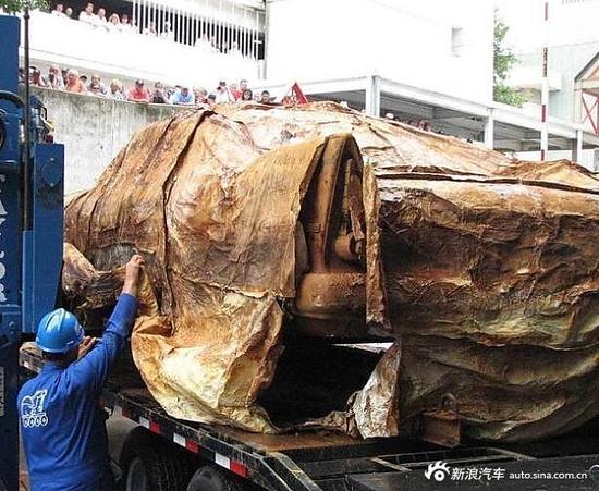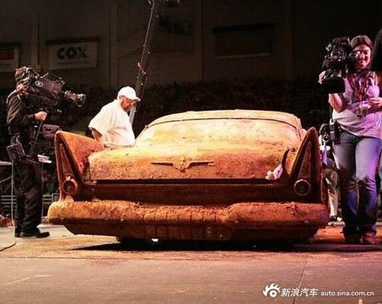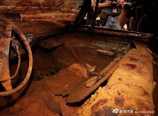 这就是从陵墓里面发掘出来的古董车,从外观就可以看出它的岁月了,据说是一位土豪在1935年埋进去的,距今已经有80多年了,古董车的外观已经被严重锈蚀,但大致的形状还是可以明显看出来,价值不菲。