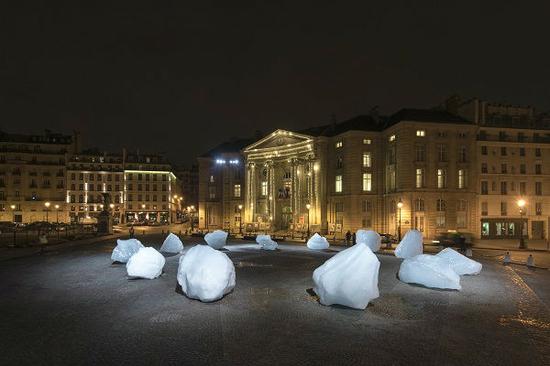 2015年,气候峰会在法国巴黎举行。虽然会议谨慎而温吞,但关心环保的艺术家们已经做出了更为激进的举动。在巴黎先贤祠前的广场上,丹麦-冰岛艺术家奥拉维尔?埃利亚松(Olafur Eliasson)偕同丹麦地质学家明尼克?罗欣(Minik Rosing)从格陵兰岛努克峡湾运来了12块总重量近乎100吨的浮游冰块。他们将这些冰块摆成钟表的形状,并将其命名为《冰钟(Ice Watch)》。晶莹无暇的冰块在阳光下开始融化,人们好奇的聚拢过来,试图触碰靠近这些冰块。眼前可触的直观体验想必会让“气候变暖”这件事深深地烙印在民众心里,今后对此类问题也会更加的敏感关注。