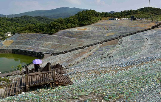 从2015年起,台湾的一群艺术家和慈济组织就开始搜集废弃的塑料瓶。到2016年1月22日,他们的作品终于对世人亮相了。这是一个覆盖整个山坡的巨大“画作”,内容是梵高的名作《星空》。整个“画作”面积达到了4万余平方米,其组成则是400万个废弃的塑料瓶。据场地创办人介绍,这400万个塑料瓶的搜集异常艰辛,因为瓶子不是拿来就可以用的,还需要进行清洗、按照颜色分类,最后由团队设计摆放。在整个创作过程中,仅丈量和计算,就花去了3个月的时间。由于“环保”是一个当代概念,因此主动表述环保的意象往往都出现在当代艺术创作中。而次此实景艺术将大师名画进行了另类阐述,对于花样百出的“艺术环保界”来说,显然是一股重磅“泥石流”。
