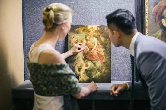 Clementine Sinclair是古典大师艺术部晚间拍卖主管,她身后这些画不是伦勃朗就是鲁本斯之类?!肮诺浯笫Α敝傅氖?800年之前的欧洲画家。