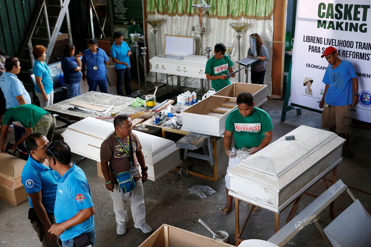 关键词:菲律宾扫毒 毒贩做棺材接受改造