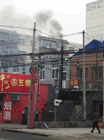 16日上午,督察组发现通州区白庙新村一作坊冒黑烟严重。