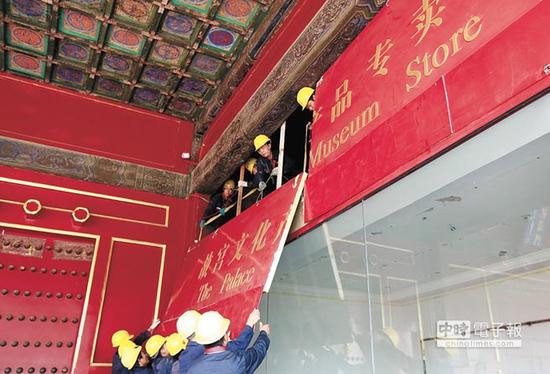10月10日,北京故宫拆除彩钢板房(台湾称组合屋)。(中新社)