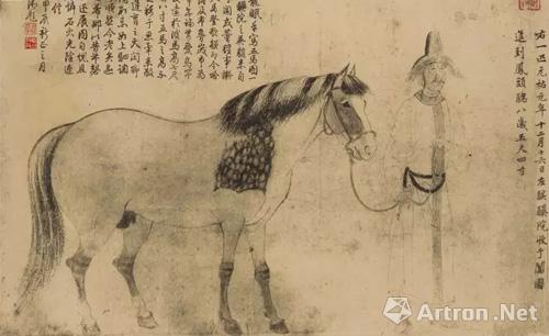 在明清两朝又是残酷的民族战乱,书画史上的浩劫又再出现,元末明初,朱元璋命徐达北伐,徐达进入元大都后,将城墙、元皇宫拆毁,此举应是对蒙元政权残酷镇压汉族人民的报复行为,元大都的城郭宫殿已无资料可查,只有美国纳尔逊博物《元人宦迹图》可依图参考。元内府的书画收藏所剩无己,钤盖元内府及皇姐图书印鉴的书画,并且还钤有明内府“典礼纪察司印”藏印,今存仅十八幅,这批书画应属洪武初期抄家之物。洪武二十八年“典礼纪察司”归入司礼监,所藏书画再进入司礼监,钤盖“典礼纪察司印”的宋元藏画存世仅89件。朱元璋经常赏赐给子孙、大臣,如鲁王朱檀洪武二十二年死(1389年),1970年出土三件书画钤《典礼纪察司印》书画,即宋人绢本《金画葵花蛱蝶图》纨扇编号日字148,对幅宋高宗赵构金书草书七绝;元人钱选《白莲图并自书诗》卷;宋人绢本《金碧山水》卷编号日字119。《蛱蝶图》有“皇姐图书”藏印,三幅绘画均钤“典礼纪察司印”,足以证明朱元璋赏赐朱檀之物。刘九庵《朱檀墓出土画卷的几个问题》原载《文物》1972年第八期。