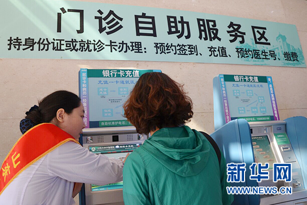 患者在齐鲁医院用身份证建立虚拟账户后,刷身份证即可完成就医。新华网 刘映 摄