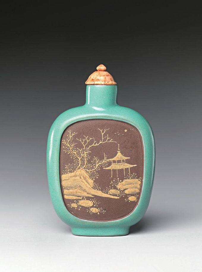 另外,对鼻烟壶进行护理与保养,就需要了解各种鼻烟壶的特性。比如,翡翠鼻烟壶怕汗液、碱,不能将翡翠鼻烟壶放在有油烟的地方,不可日晒。室内喷洒空气清新剂,或使用发胶、杀虫剂时,要先把鼻烟壶收藏好,切勿沾溅。壶本身有气孔或质地娇嫩者,如松石鼻烟壶切忌近油烟或蒸气。切勿将松石鼻烟壶放在高温处,其遇到高温会变成淡色。