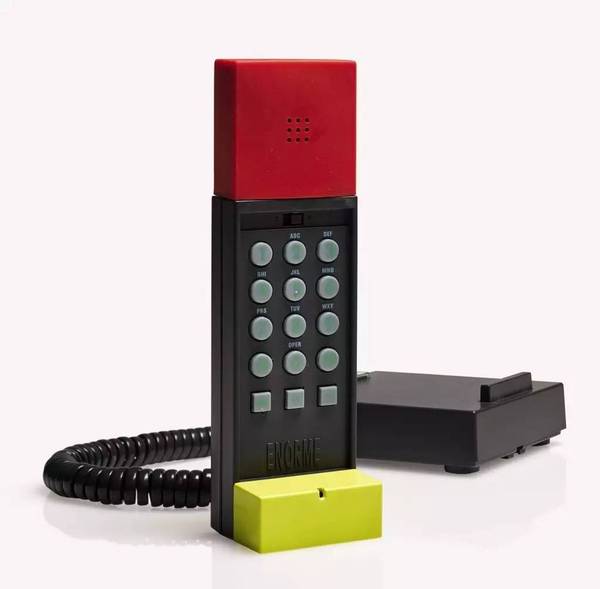 这件外形规整、色彩鲜明的电话机是Ettore Sottsass 1986年为制造商Enorme设计的作品。