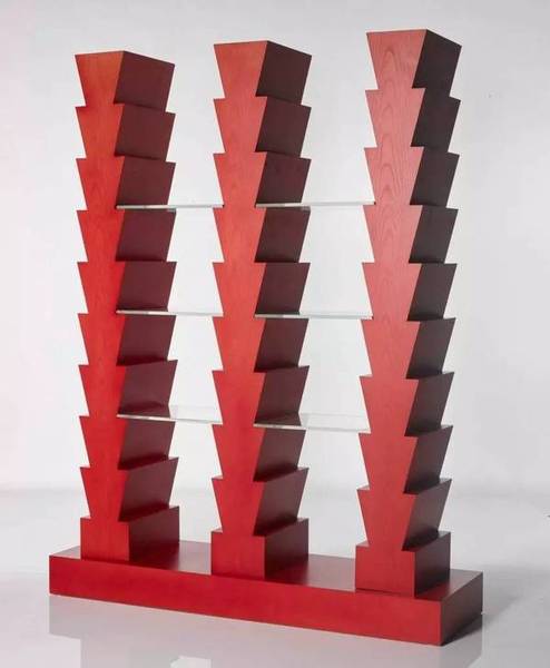 这件1992年问世的书架与Ettore Sottsass当年的Valentine打字机遥相呼应,同样采用了大胆的红色外观,像是三束射向舞台的灯光。