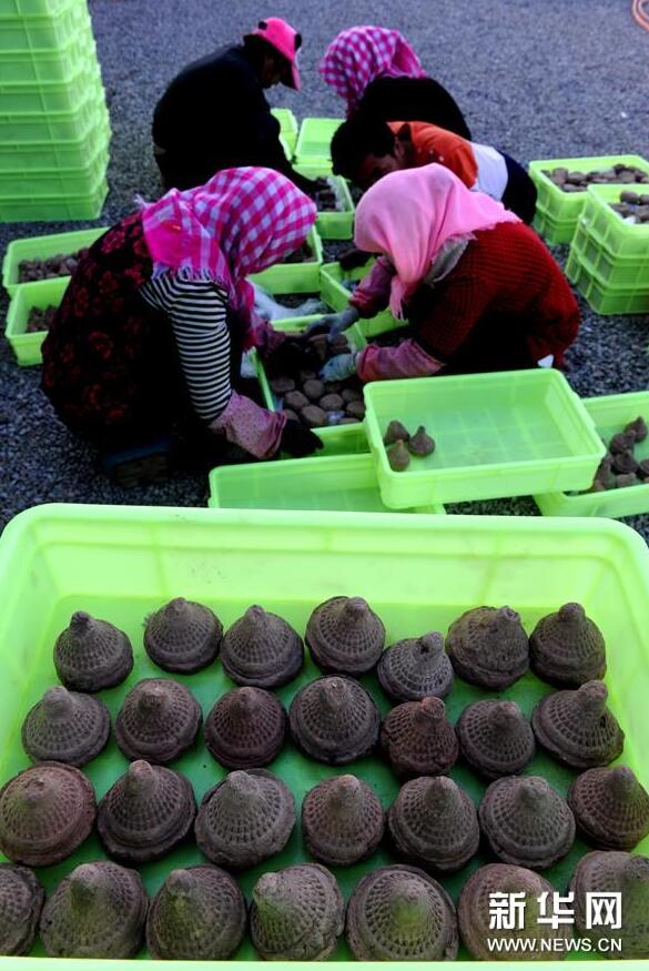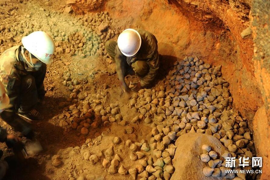 工作人员对出土的擦擦进行归类装箱(10月15日摄)。
