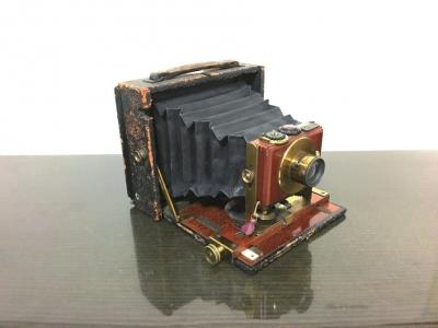 而在他接触的众多相机中,印象最深的是一台与祖父相机相似的蔡司相机。金鹏飞说,根据它荔枝红的皮腔和“An-astigmat”字样推断,这台相机产于1900年以前。“这台相机和我祖父留下来的那台很像,就是个头小一点?!苯鹋舴苫辜堑茫鞘窃谏鲜兰?0年代,他买不起这台相机,但每天都去相机店看一眼?!熬秃ε卤鹑寺蜃吡?,心都提到了嗓子眼。”最后,他东拼西凑了一万多元,买走了这台相机?!鞍颜馓ㄏ嗷蚧丶液?,我心里的石头才落了地,但是老板却关了三天门,生怕我反悔,可我知道,为了喜爱的相机,我是不会后悔的?!苯鹋舴伤?。