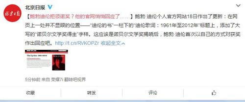 原标题:鲍勃迪伦拒领诺奖?他的官网悄悄回应了……