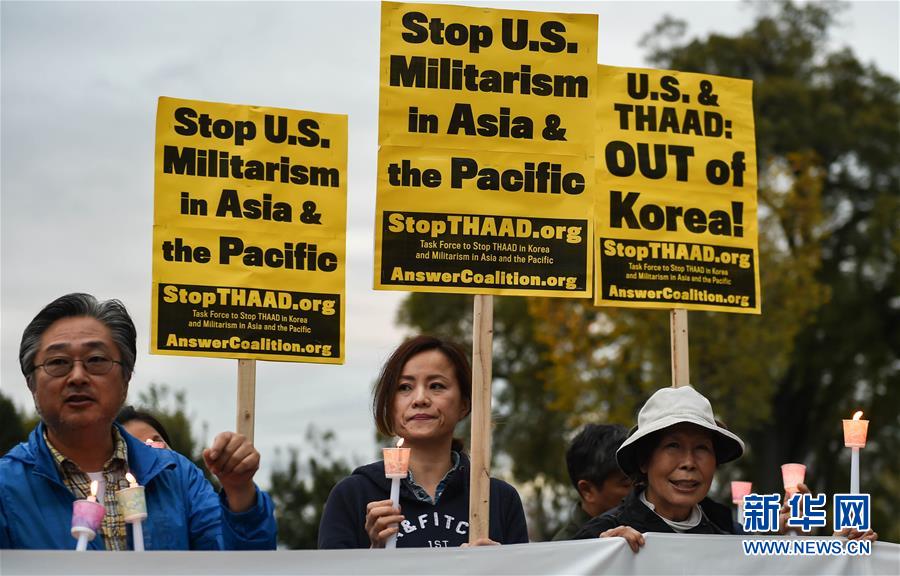 当日,一场反对美国在韩部署“萨德”反导系统以及反对美国在亚太地区军事部署的集会活动在白宫前举行。
