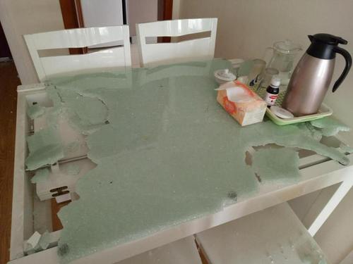 一声巨响餐桌玻璃溅落一地