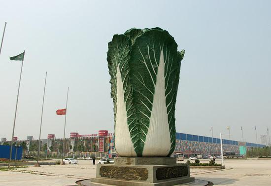 2016年10月2日,河南省安阳市内黄县,内黄县农业博览园内,一颗高19米,直径8米的巨型“白菜”雕塑亮相,寓意着“百财”,为玻璃钢材 质,造型逼真吸引了大批市民前来参观拍照。