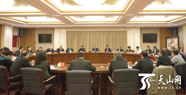 10月18日,自治区政协举行月度协商会,围绕“促进传统媒体与新兴媒体融合发展”协商建言。自治区政协主席努尔兰·阿不都满金主持会议。