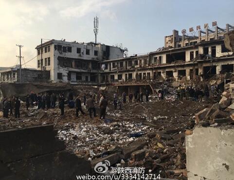 另据陕西消防微博消息,10月24日14时06分,榆林119指挥中心接警称,府谷县新民镇不明物质爆炸,支队立即调派5个中队10辆车及70余名官兵赶赴处置。到场发现,现场爆炸威力较大,房屋倒塌,有人员被困,官兵们立即展开营救,目前救援仍在紧张进行中。