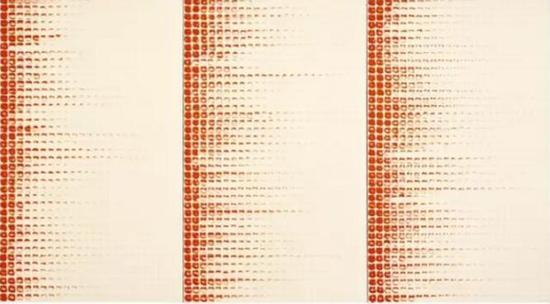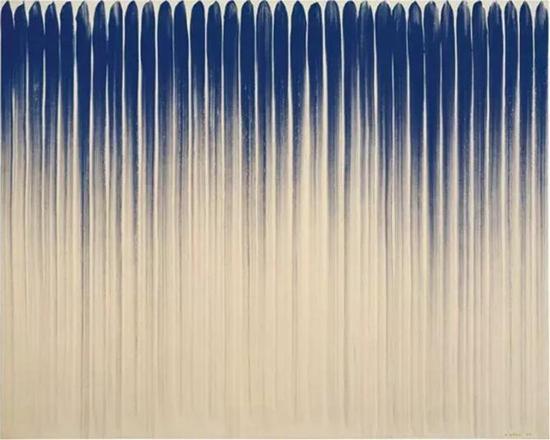 2014年以1369.2万港币成交的《源于线Oil and mineral pigment on canvas》“物派”结束之后,李禹焕的艺术创作开始逐渐转向平面绘画。1974年,他创作了最具代表性的绘画系列作品“从点开始”与“从线开始”,用蘸着颜料的画笔,工工整整地画出一道道线条,并且一直在重复这个过程,直到颜料耗尽,让画面呈现出从有到无,从无到有的渐变效果。其1975年作的单色绘画作品《源于线Oil and mineral pigment oncanvas》在2014年以1369.2万港币成交;而今年在香港苏富比春拍中其1977年所作《从点镜框矿物颜料及胶水画布》也以1028万港币成交。