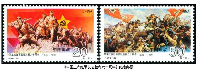 1996年10月22日,中国邮政发行的《中国工农红军长征胜利六十周年》纪念邮票