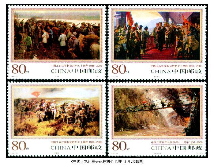 2006年10月22日,中国邮政发行的《中国工农红军长征胜利七十周年》纪念邮票