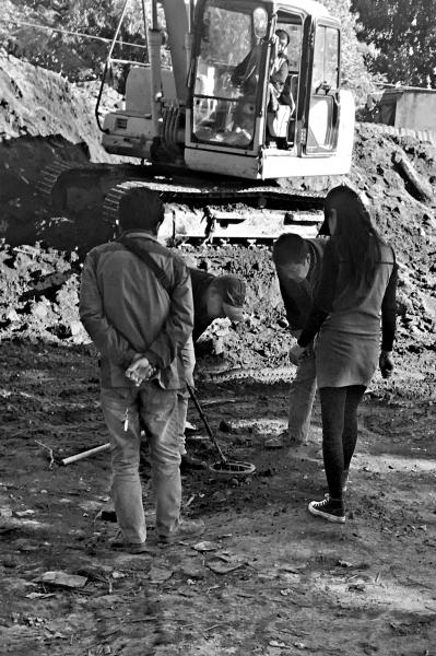 “就这块地方,那天晚上可热闹啦。来挖宝的人,既有北京的也有外地人,既有十几岁的孩子也有七八十岁的老人。他们折腾到凌晨才散,第二天上午又回来了。这里在解放后就是街道的铁工厂,居然这下面能有宝贝,你说奇怪不奇怪?我听说,有人找到了元宝。”喂猫的老爷子叨唠着。
