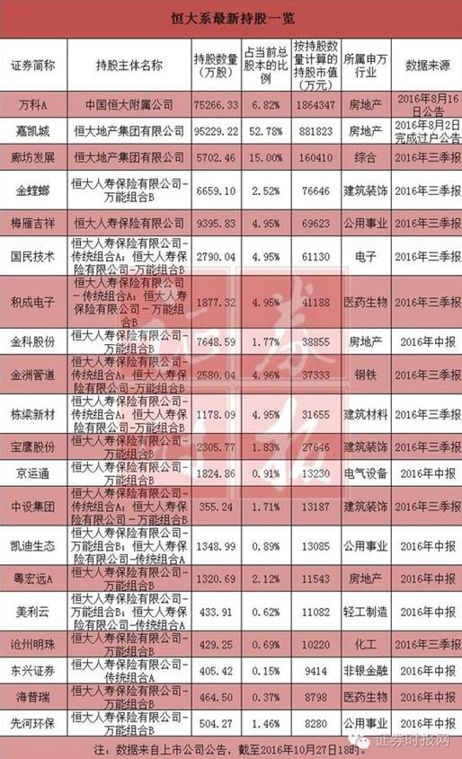 除了上述恒大人寿入主的公司外,市场更加关注的则是恒大举牌及控股的几家公司。