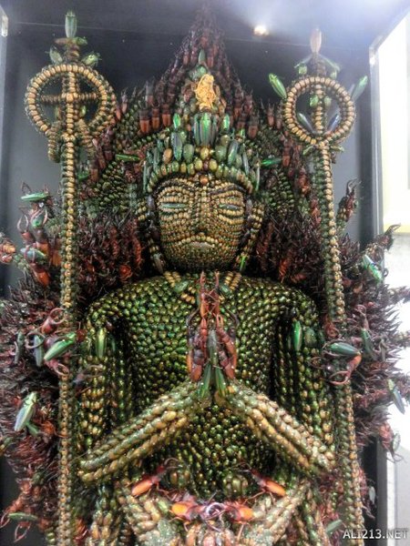 关键词:日本老人 用2万只昆虫 做成千手观音像