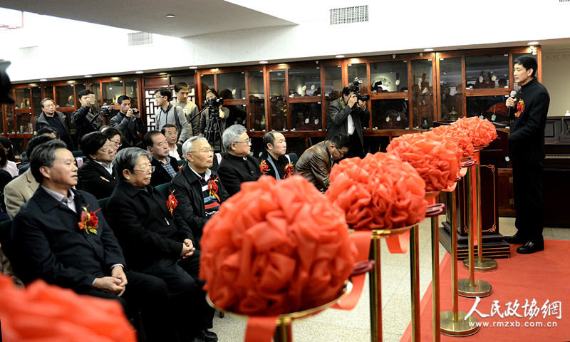 全国政协委员、中国书协顾问赵长青在高宏书画展上讲话鼓励新生代画家刻苦专研中国画技巧