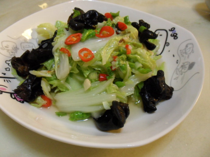 黑木耳不仅是人们熟知的“血管清道夫”,也是“肠道清道夫”,其中丰富的膳食纤维能促进胃肠蠕动。白菜具有养胃生津、除烦解渴、利尿通便等功效。因而,二者相搭配,不但色彩上黑白分明,口感口味互相补充,通便效果也是相得益彰。木耳白菜汤的做法很简单,把黑木耳用水泡开,将大白菜叶切段,一起放入锅中加入调料煮熟即可。