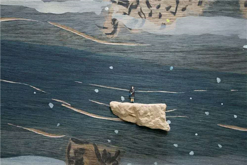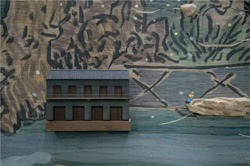 林东鹏,《时态景观(二)》(局部),2014年至2016年,炭枝、比例模型及塑料彩板本,82 × 81.3 厘米