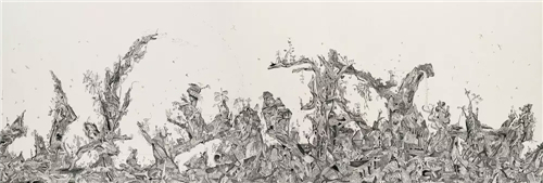 林穴,《无题(2010-0)》,2009年至2010年,水墨画,64.2 × 182.2 × 7.4 厘米