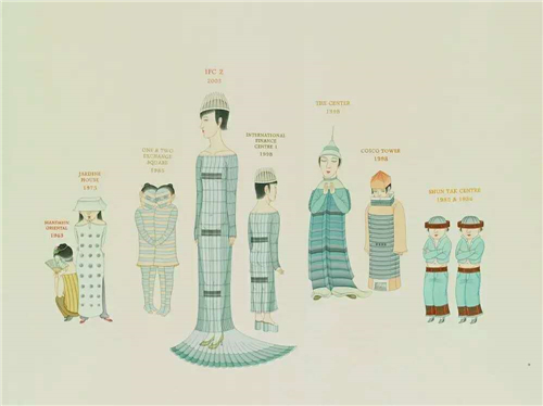 石家豪,《维多利亚城》,2006年,水墨、设色,绢本,71 × 192 厘米