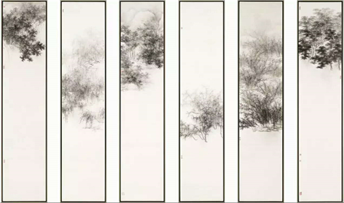 管伟邦,《经典再造》,2012年,水墨绢本,213 × 45.8 厘米(每屏,一共6屏)