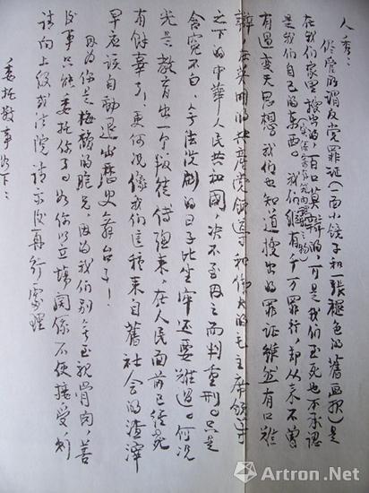 而其晚期最重要的墨迹无疑非1966年《傅雷遗书》莫属,此书为致朱人秀札,是辞世前以毛笔书就,长达三页的遗书,一字未改,甚至连房租、手表、火葬费、给保姆的工资都交待得清清楚楚,从容而不失儒雅,冷静而极其哀痛,有一种孤高而大悲之极的境界,然而字字都是控诉,读之如读王羲之《丧乱帖》(现存日本),如见其人其心,行文之初是:“人秀:尽管所谓反党罪证(一面小镜子和一张褪色的旧画报)是在我们家里搜出的,百口莫辩的,可是我们至死也不承认是我们自己的东西(实系寄存箱内理出之物)”,此数行文字系手札初起,“人”字第一笔即有一股痛苦之气,表面尚正襟危坐,用笔已见纵逸之态,而写到“在人民面前,已经死有余辜了!更何况像我们这种来自旧社会的渣滓”,一种勃郁不平之气顿起,与王羲之《丧乱帖》写到“追惟酷甚,号慕摧绝,痛贯心肝,痛当奈何奈何”的字体突起变化相似,与傅雷家书的敦厚慈爱不同,也与沉潜于六朝隶意的书法不同,傅雷遗书似乎恢复了傅雷早期书法的一种清俊洒脱,有孤高之味,然而却更多沉郁,且全无尘俗气。