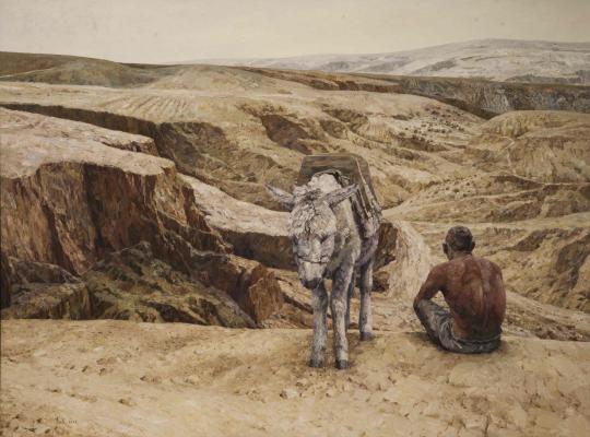 图为孙为民 《西北风情》布面油画。 刘秀浩 摄