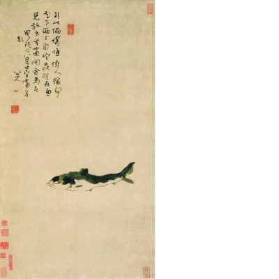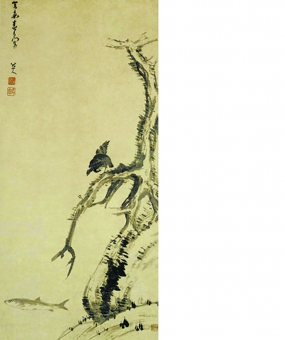 进僧门,是迫不得已,出僧门已颇决然了。52岁时,八大完全是个云游的画僧了,他可以一门心思去寻他的朋友裘琏去谈诗论画,并结识裘琏做新昌县令的岳父胡亦堂,成了他的座上客。胡亦堂转临川知县,邀请八大参加他主办的梦川亭诗文盛会,八大是写了诗的。职业画僧的生活尽管少了空门的冷寂,多了应酬的表面热闹,可内心的悲苦与压抑仍然无法排遣。在临川胡亦堂府上为清客的两年间,八大的情绪日益消沉,并没有因为从寺院出来就找到了快乐,他的画笔也是苦涩多余轻快。忽一日,他突然大哭大笑起来,弄得人摸不着头脑。他扯下身上的袈裟,点火烧了起来,人拦也拦不住。他就这么一把眼泪,一把鼻涕,一会儿干嚎,一会儿狂笑着,走回了南昌。他疯了,他癫了,没有人敢挨近他。当他破破烂烂、疯疯癫癫出现在南昌街头时,没有谁知道他是昔日的王孙。只当是条可怜可嫌的徘徊于街头巷尾与垃圾堆的丧家狗。还是他的一位远房侄子认出了这个老叔,把他带回家门,清洗干净,悉心照料调养了一年多,才渐渐恢复正常。