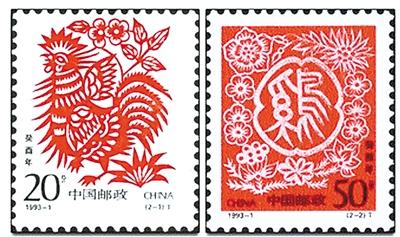 2017年1月5日将发行《丁酉年》生肖鸡特种邮票。一套两枚,第一枚的图案是一只威风凛凛、健美而强壮的雄鸡,以昂首挺胸的姿态走向新的一年;第二枚图案是一只温婉、柔美的鸡妈妈护着两只可爱的小雏鸡。全套邮票表现了幸福美满的生肖鸡“一家子”,延续了第四轮生肖邮票开门票——2016年《丙申年》猴票主推的吉祥“合家欢”主题。