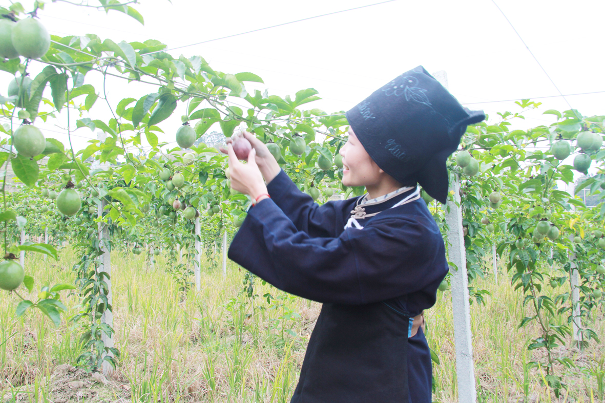 布依族姑娘正在采摘百香果
