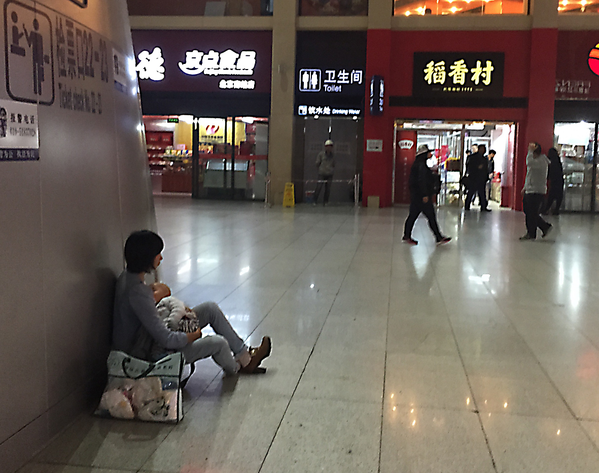 王灿发在现场调研时看到,由于座位太少,许多候车乘客不得不席地而坐,有的还坐在自己的行李箱上,有的倚在商店的墙边,甚至有的女士不得不坐在地上给婴儿喂奶。
