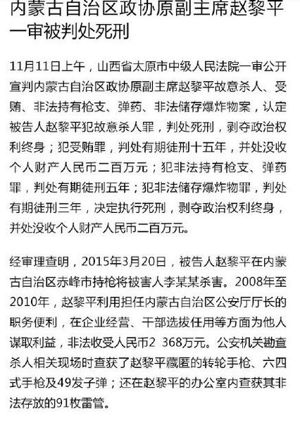 早前报道:赵黎平杀情人被诉 系建国后首个亲手杀人省部高官