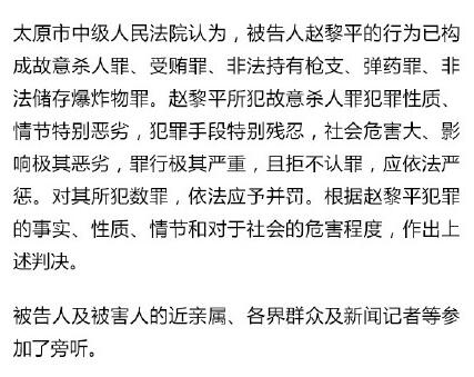 法院经审理查明,2015年3月20日,赵黎平在内蒙古自治区赤峰市持枪将被害人李某某杀害。2008年至2010年,赵黎平非法收受人民币2368万元。公安机关在赵黎平办公室查获其非法存放的91枚雷管。
