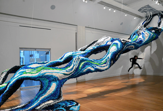 Crystal Wagner的作品模仿自然界中有机生态,看起来像藤蔓的生长样式,这个大型的装置艺术,充满了美丽的色彩和无尽的想象空间。
