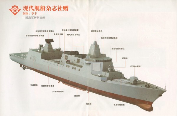 但是,在这一重量级别上并非只有“朱姆沃尔特”号一艘军舰。就在美国人庆祝“朱姆沃尔特”号入列服役时,在地球的另一端的上海一个造船厂,中国海军正建造自己的1.4万吨排水量的驱逐舰。