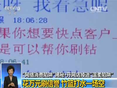 受害人 丁先生:他们说,你店铺没有信誉,人家也不会来买。然后婚恋网站的那个女孩子跟我说,上学的时候她也想让自己的店铺更快地让更多的人看到来买,然后她就刷了三个“蓝钻”,当时付了三千多块钱,建议我去刷一下。