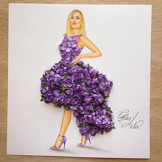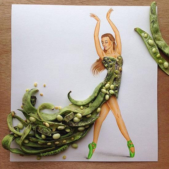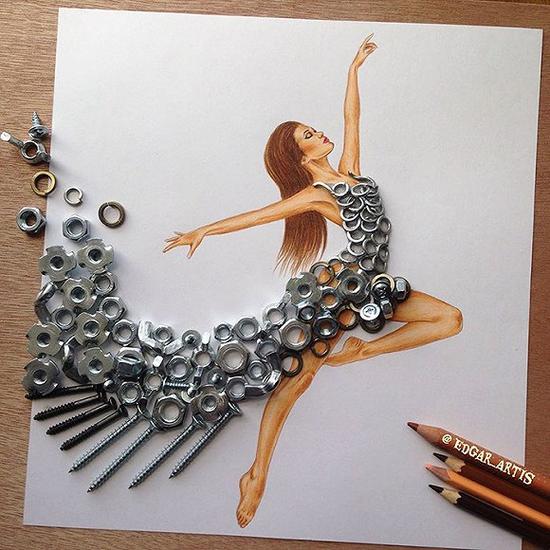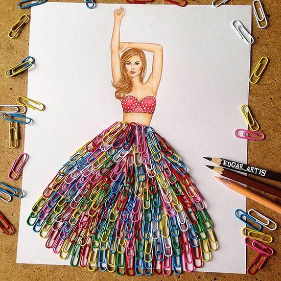 美国时尚插画家Edgar Artis凭借自己独特的创意在Instagram上火了一把。创作设计草图时,Edgar与一般的插画师不同,他会先在纸上画好想要的轮廓,但接着他并不会用颜料上色,而是用任何他在家里找到的日常用品来完成这个过程。