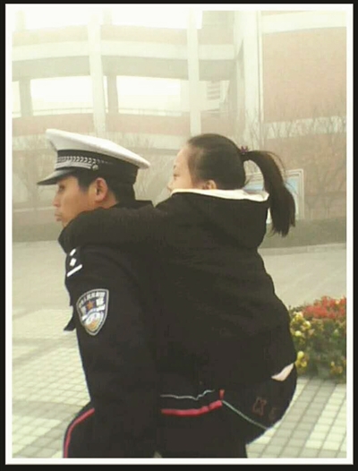 风雪中把孩子抱过泥泞:2011年1月20日早晨,雨雪交加,骑电动车的谢才保摔了好几跤,赶到学校门口时已是7点30分,虽然最高峰已过,但陆旭东还是一头汗地忙碌着,抱孩子过马路的他,警服上沾满了泥浆和雪水。