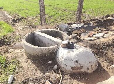 新乐市南青同村被抹上水泥的废弃枯井。 郭东摄