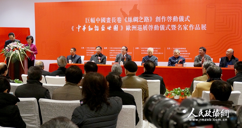 11月13日,“巨幅中国画长卷《丝绸之路》创作启动仪式、《中华和谐盛世图》欧洲巡展启动仪式暨名家作品展”在京开幕。人民政协网记者田福良 摄