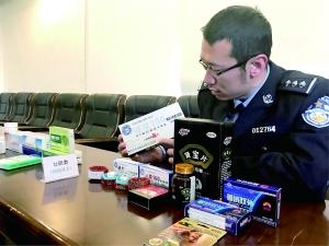 民警展示在“网歼行动”中起获的部分药品。公安供图